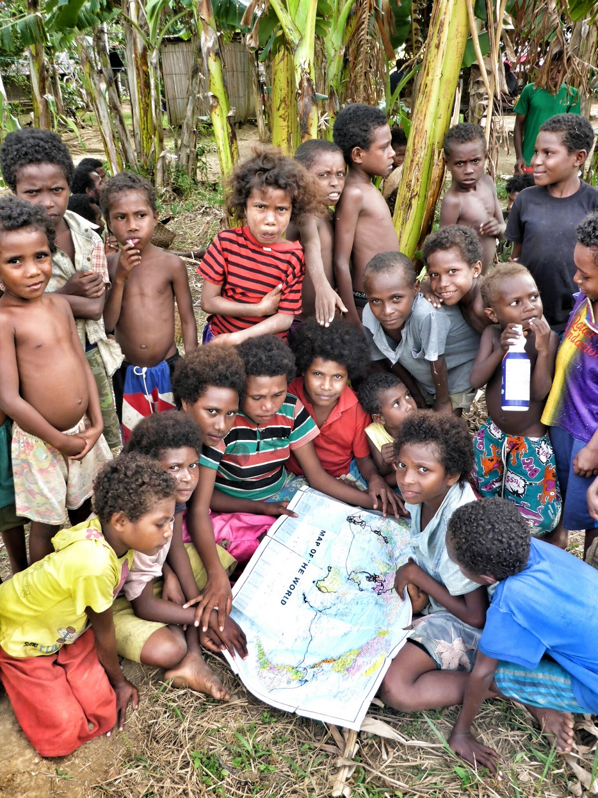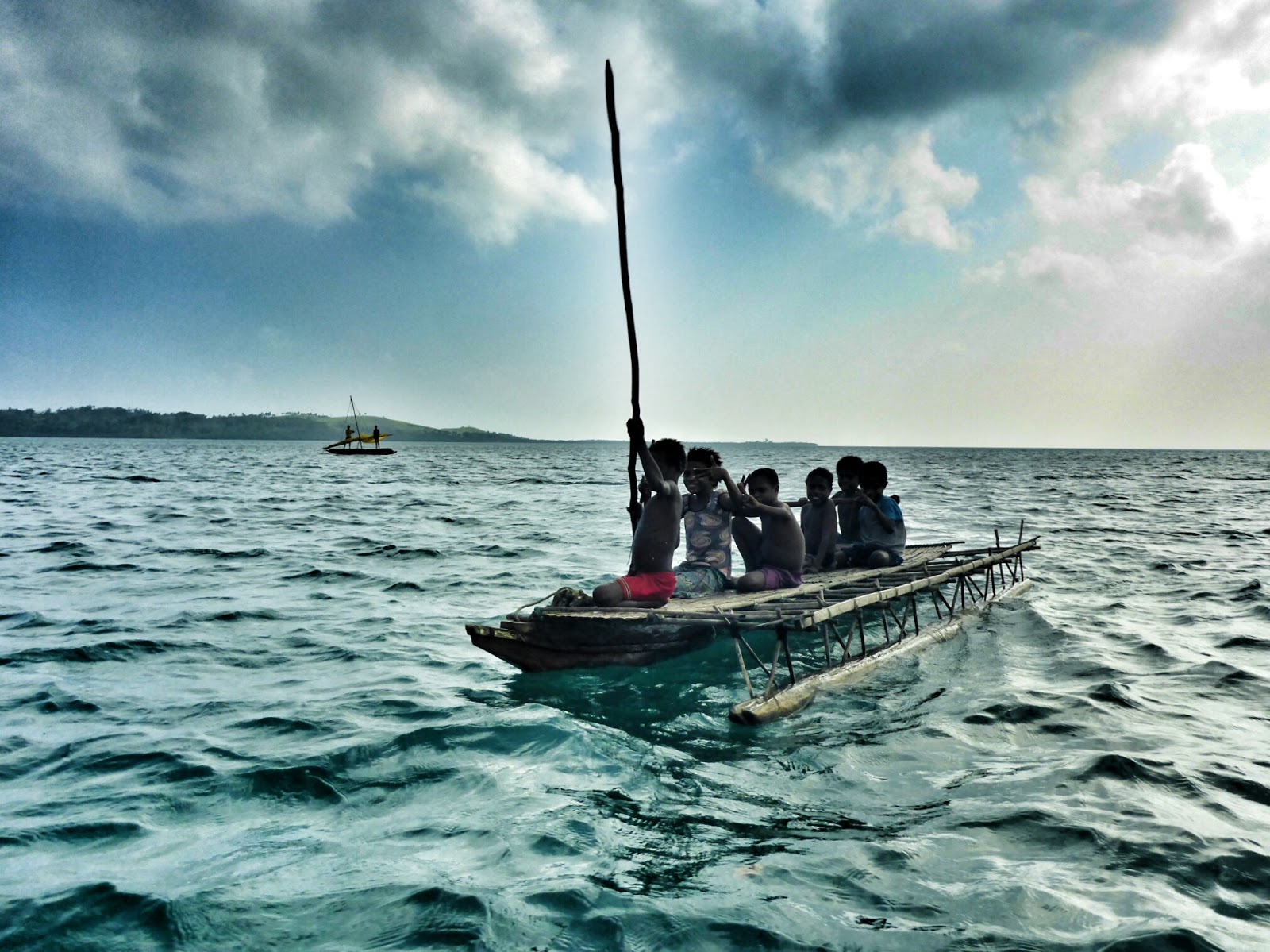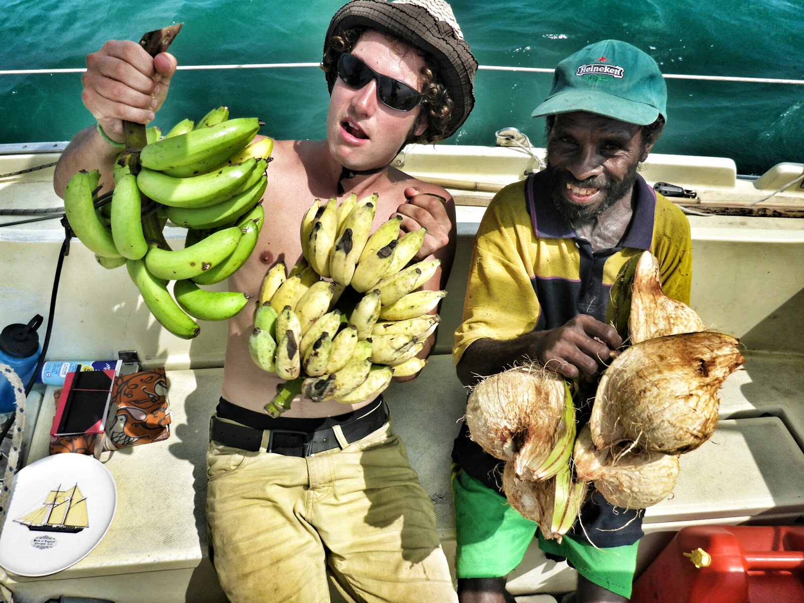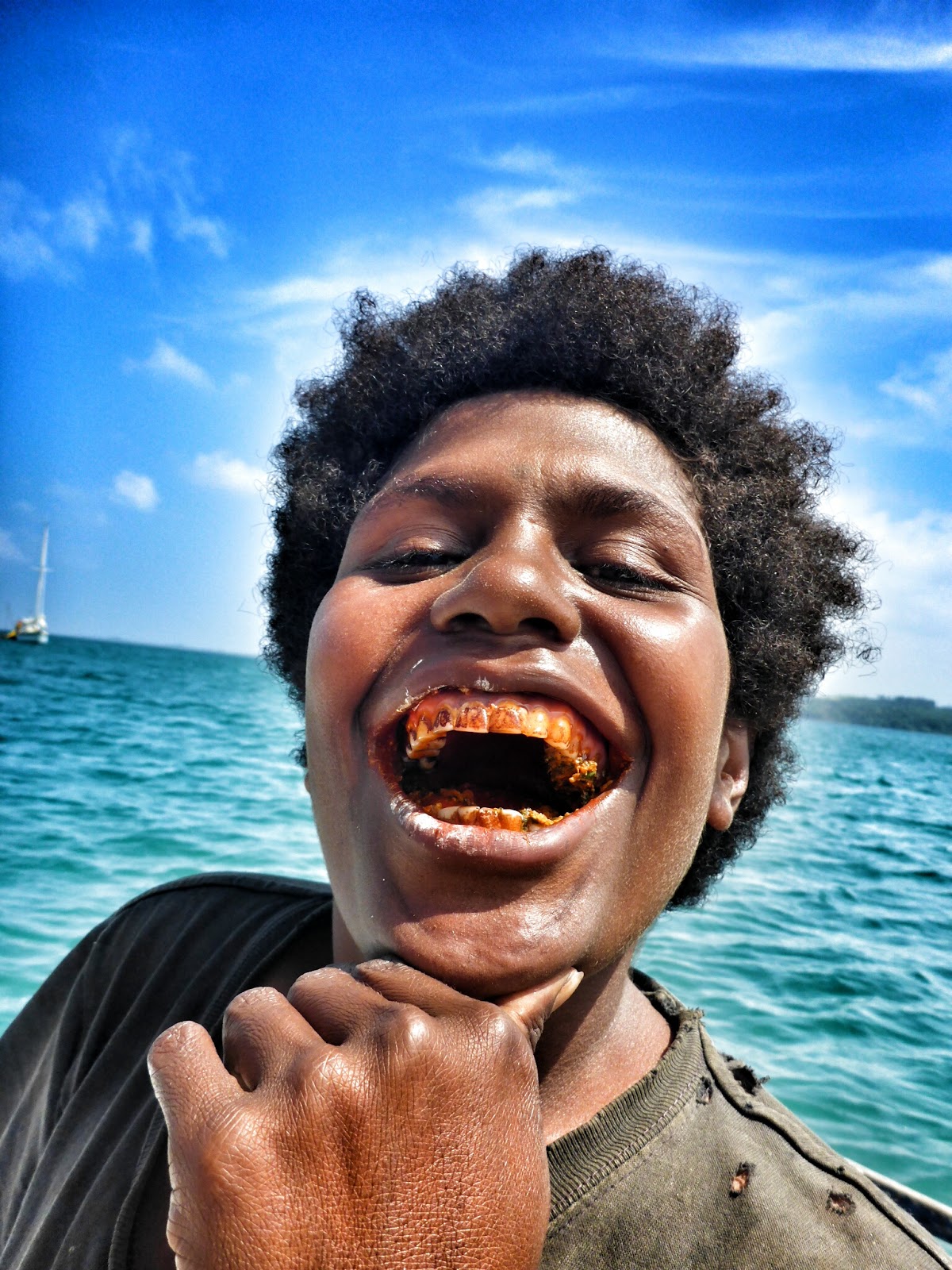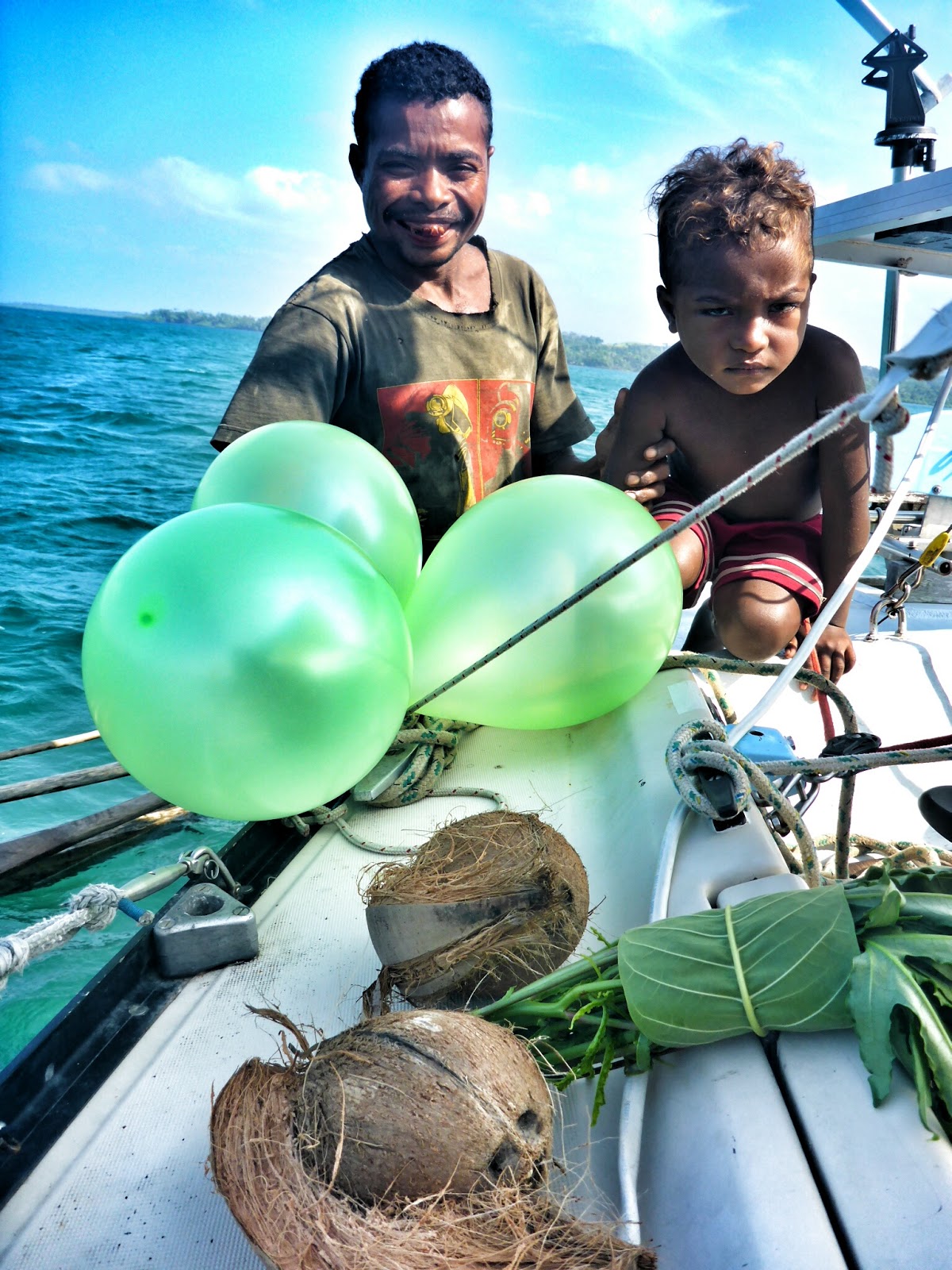 “She’s half school” (one coconut short of a palm) chuckled the toothless beetlenuters who’d tied up to our boat to give us yams as another wanga [outrigger] paddled over.